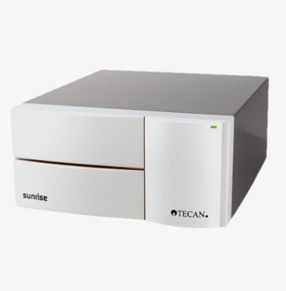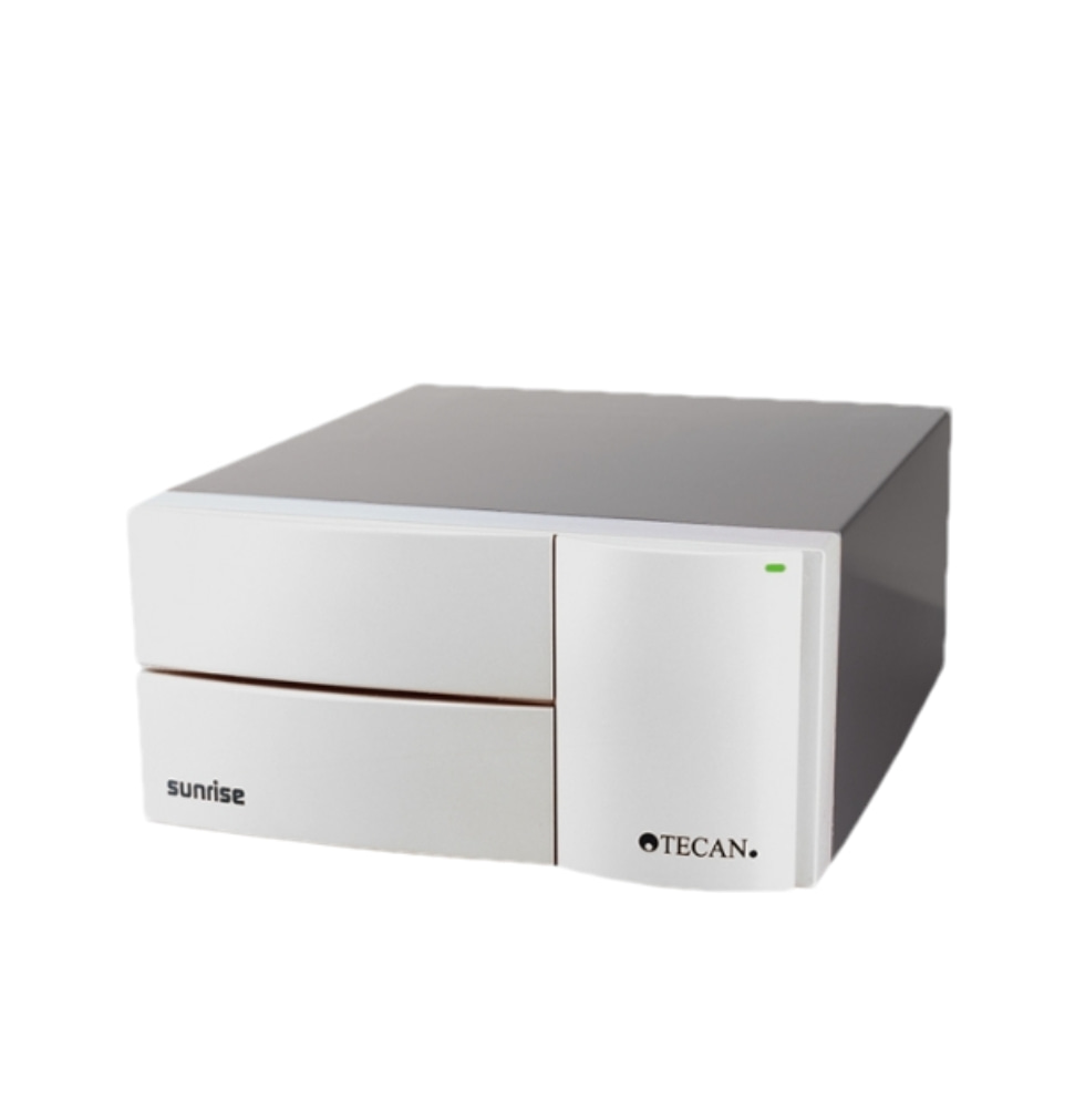 Tecan的 Sunrise 光吸收酶标仪提供多种光度测量应用所需的功能,包括 12 通道光吸收可用于快速、多通道地进行吸光度 ELISA分析,温度控制功能可以进行酶动力学分析,波长可调功能可用于波长扫描。